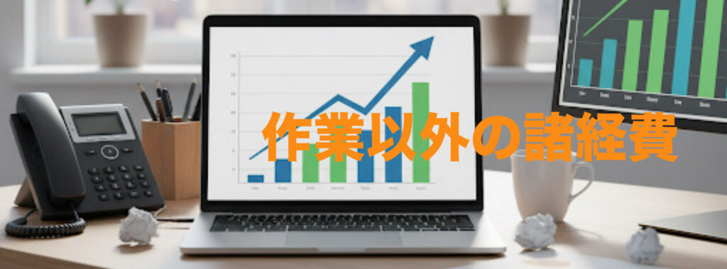 作業以外の諸経費とは、事務や営業の人件費や営業の移動にかかる交通費、店舗維持費、広告宣伝費、中間マージンを含む業者の利益などをひとくくりにした費用になります。