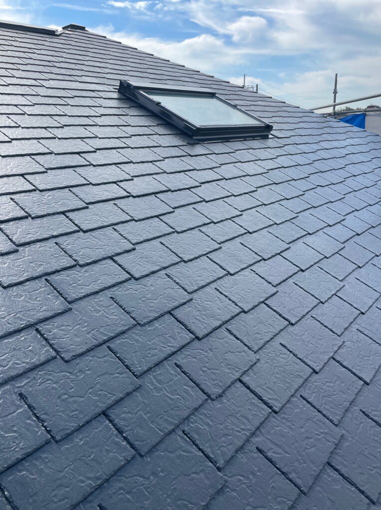 ・上塗り1.2回目 – ニッペ パーフェクトトップSiを使用。低汚染性、防藻-防カビ機能があり、コケやカビの発生を抑制する。
