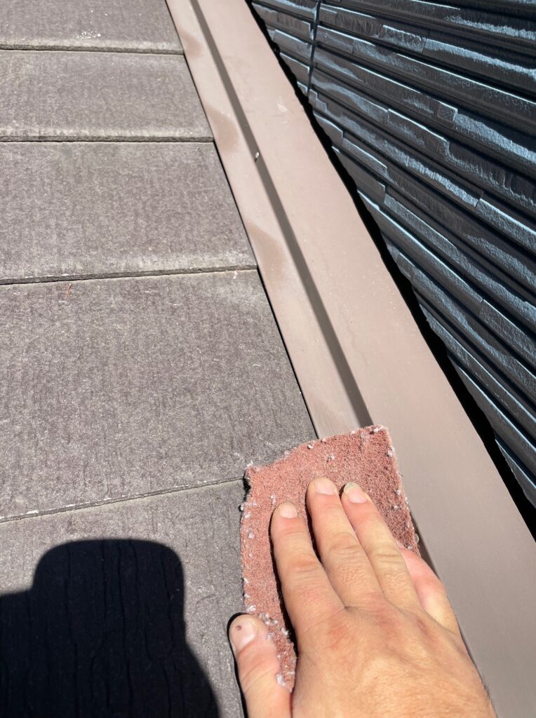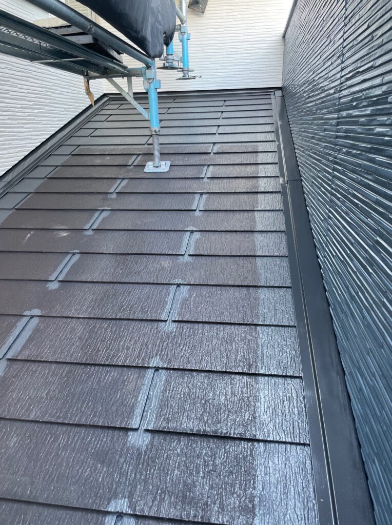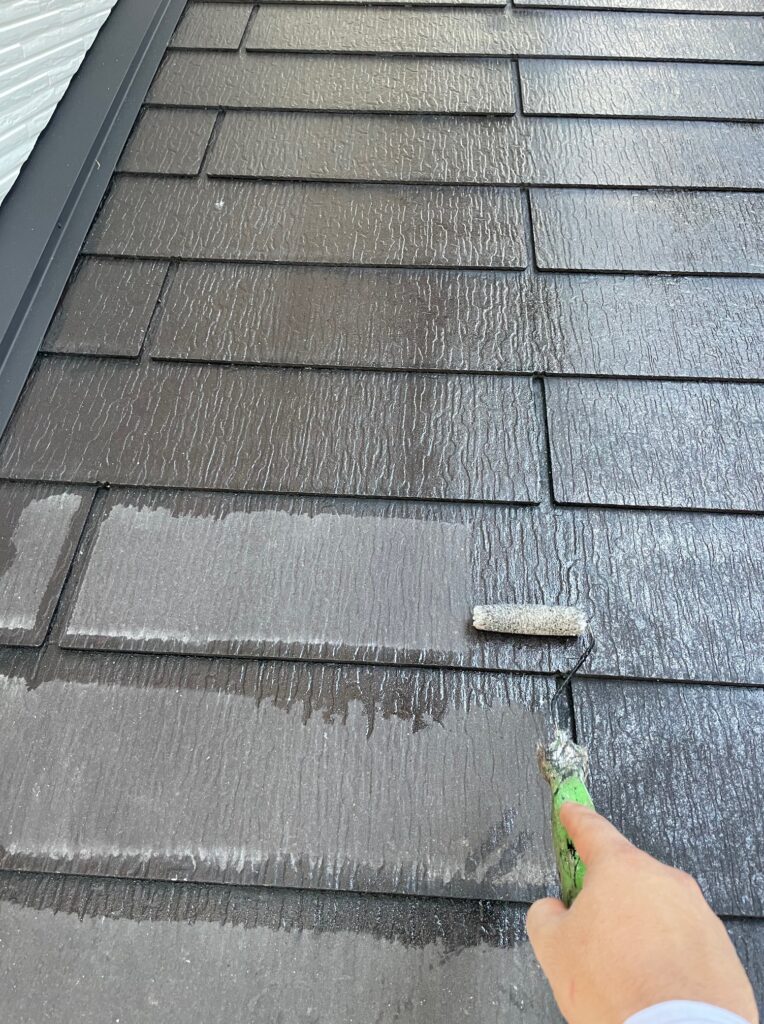 瓦材部分の下塗り。塗料の密着性を向上させるシーラーを塗布していきます。( * text 3 )
