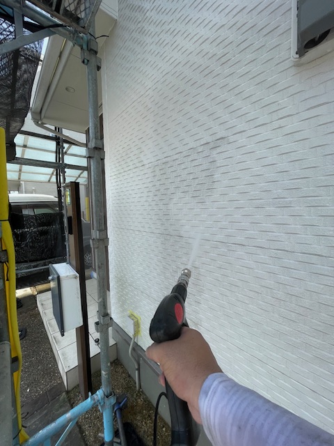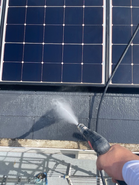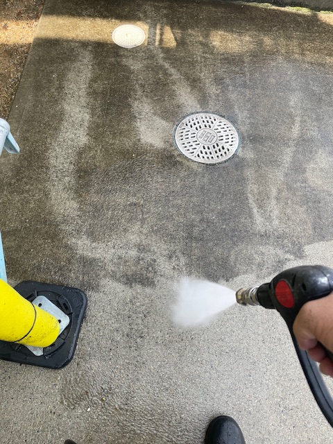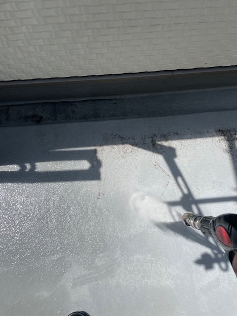 1日、シールの乾燥期間をあけて、本日は高圧洗浄( 水洗い )を行っていきます。