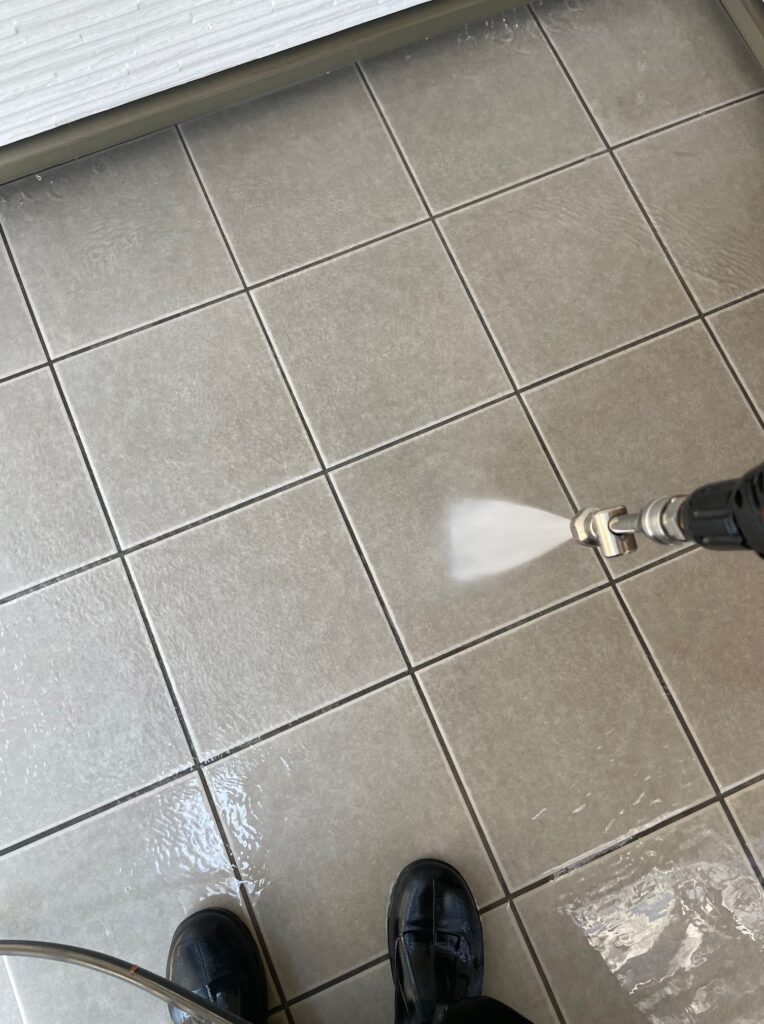 最後に土間やタイルを洗っていきます。