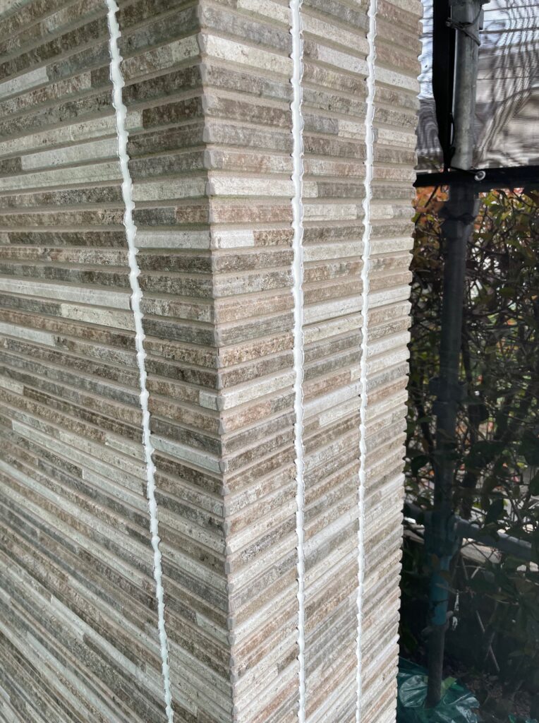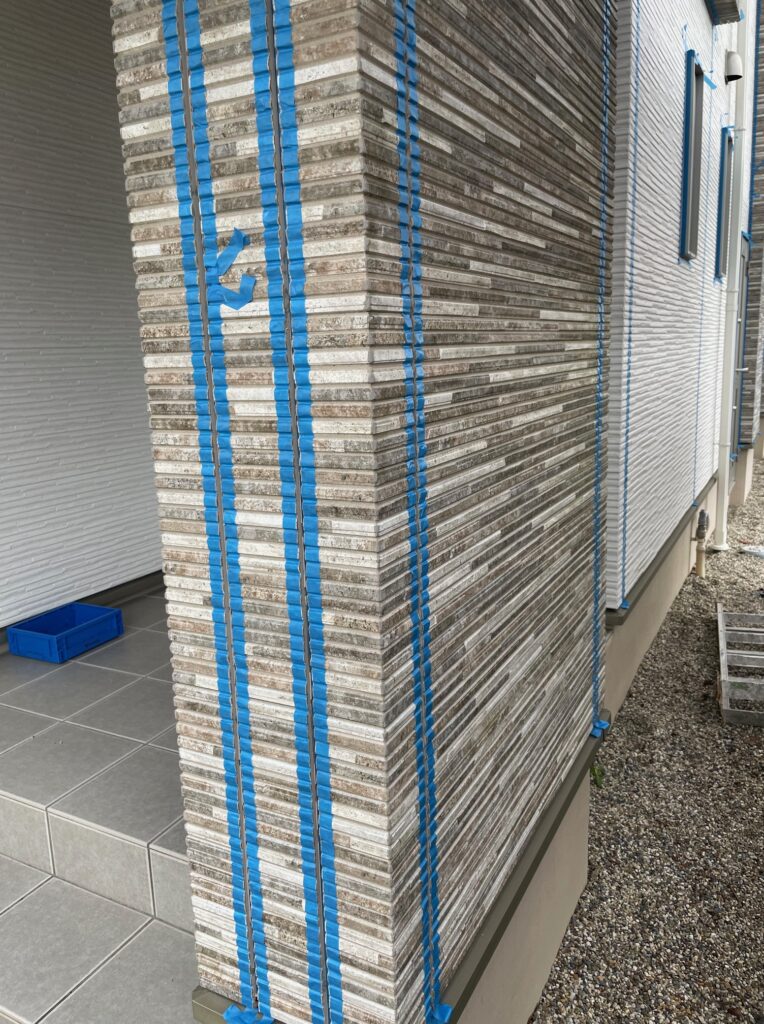 凹凸に合わせて貼っていきますが、今回の外壁はとても手強いものでした。( * text 1 . 2 )